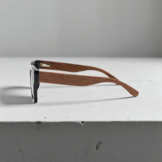 Wood Side Sunnies - Squarish Grey Clear PC Frame with Walnut Wood Temple POLARISED